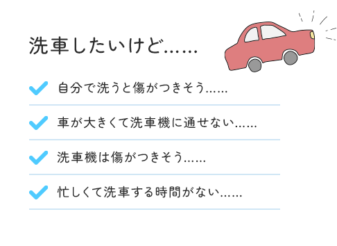 隅々まで手洗いするので、洗車機では落としきれない範囲の汚れもキレイに落とせます。